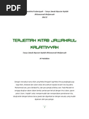 Terjemah Kitab Jawahirul Kalamiyyah Jilid i. Terjemah Kitab Jawahirul Kalamiah adalah pelajaran dasar tauhid ahlus sunnah wal jamaah. Dapat didownload di.