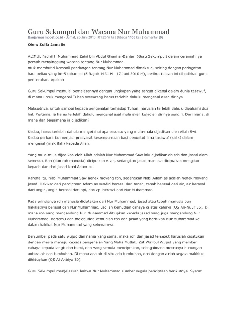 Nur Muhammad sejarah nusantara Abstract The idea of Nur Muhammad much dominate in the thinking of Sufi mysticism is evident from the many texts that talk about it. Jasad yang mengandung Ruh. Matan Shahih Al-Bukhari Cet.