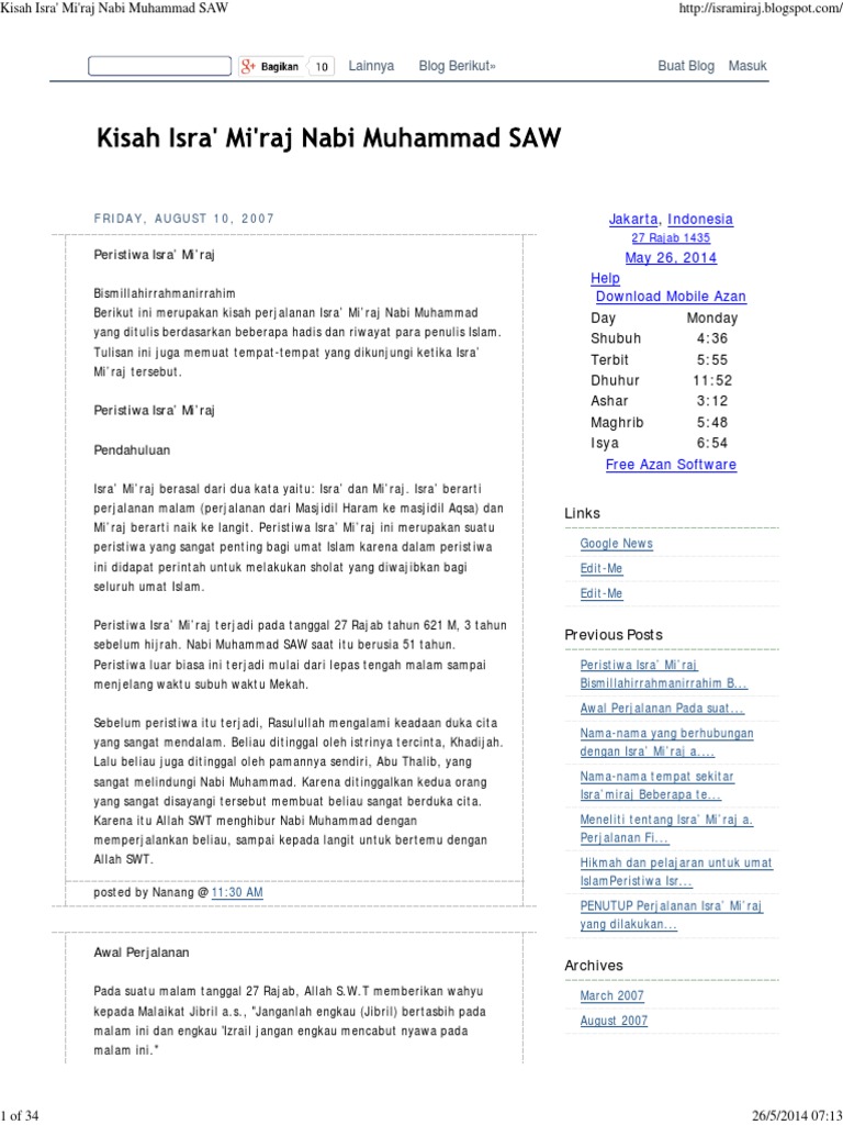 Kitab Mirajul Kabir karangan Syeikh Najmuddin al-Ghaithy. Silsilah 53 Fatwa Tentang Puasa Bahasa Indonesia File Size 2 MB. Kisah Isra Mi Raj Rasulullah Saw Pdf Buku Blog.