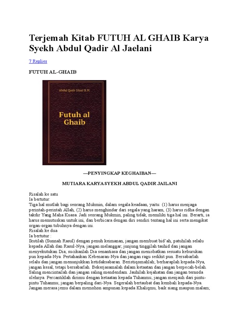 Terjemah Kitab Futuh Al Ghaib Karya Syekh Abdul Qadir Al Pdf Txt