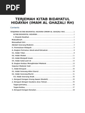 Terjemah kitab Bidayatul Hidayah PDF Download PDF Lihat Juga. Yaitu format microsoft word dan format Pdf. Bidayatul hidayah - imam al-ghazali.