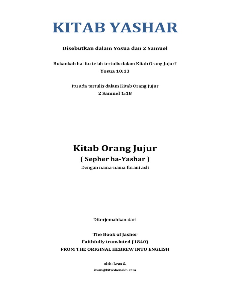 Kitab jujur sepher ha yashar terjemahan. F mereka menguatkan hati orang-orang yang berbuat jahat g sehingga tidak ada seorangpun yang bertobat dari kejahatannya. Dengan jujur menunjukkan konteks sejarah dan budaya yang asli.