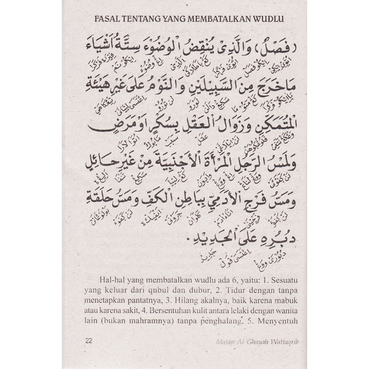 4 Mengusap sebagian kepala. Kitab Matan Al-Ghayah wat Taqrib atau dikenal dengan Kitab Taqrib saja adalah kitab fiqh paling populer di kalangan pesantren salafiyah. 6 Tertib seperti yang kami sebut.