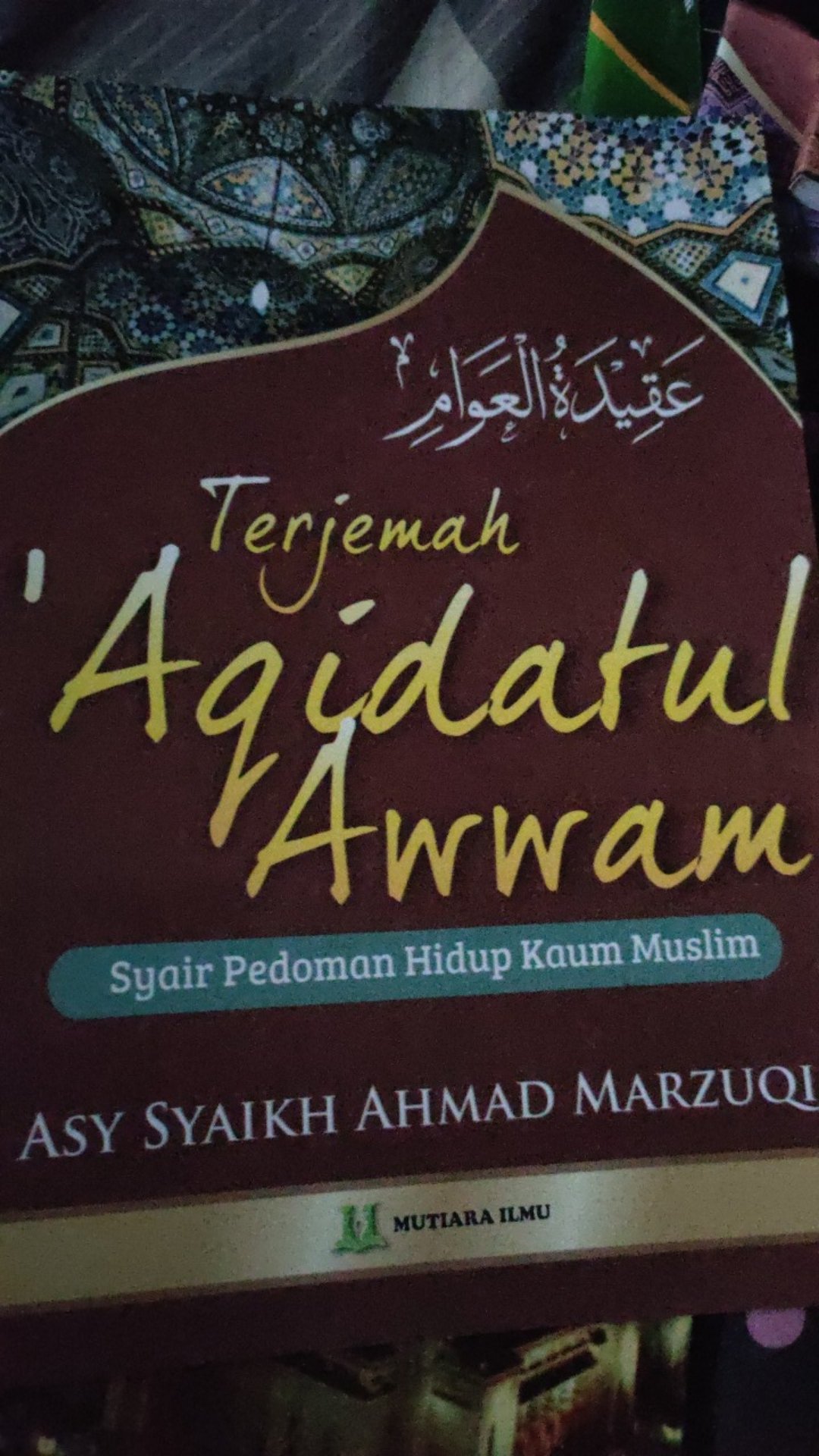 Silakan dinikmati dalam menghafal dan mempelajarinya. Hamba yang sangat membutuhkan rahmat Tuhannya Yang Maha Tinggi Muhammad bin Syafii el Fudholie as Syafii berkata Bahwa sebagian teman-temanku telah meminta padaku untuk mengarang suatu makalah dalam ilmu tauhid. Aqidatul Awam merupan kitab populer yang banyak dikaji oleh masyarakat Indonesia.